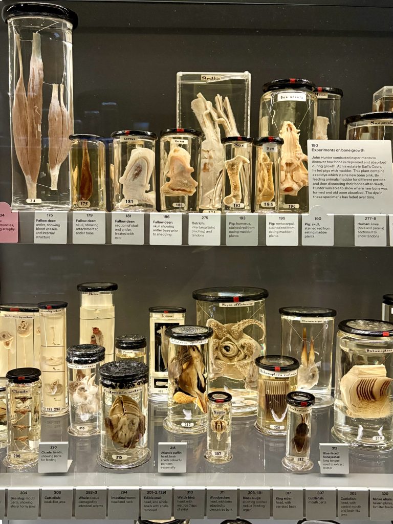 Här finns även samlingarna efter John Hunter (därav namnet, Hunterian), kirurgins fader. De uppvisar både växter, djur och människor i formalin. Vissa friska, andra med olika sjukdomar. Det kan låta läskigt men museet är faktiskt barnanpassat och här träffar man ofta på skolklasser som har lektion.